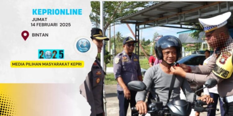 Keprionline.co.id, Bintan – Polres Bintan bagikan helm gratis kepada pengendara yang melintas di Bundaran Km 16 Desa Toayapa Selatan, Jumat 14 Februari 2025.
