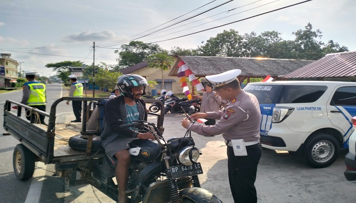 Kasat Lantas Polres Lingga AKP Bakri, S.IP mengatakan pihaknya mendukung kebijakan pemerintah pusat untuk membagikan Bendera Merah Putih dalam rangka Hari Kemerdekaan ke-78 tahun.