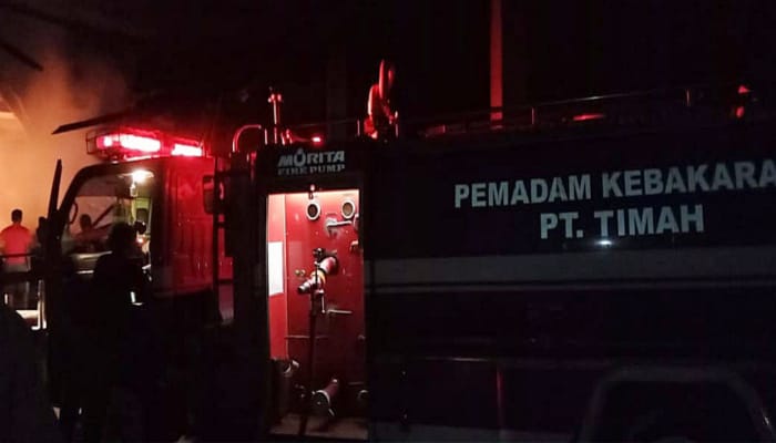 Keprionline.co.id, Karimun – PT Timah Tbk Unit Produksi Kundur mengerahkan tim pemadam kebakaran untuk membantu menangani kebakaran yang terjadi di pabrik Pengolahan gambir dan Gudang buah Pinang di Dusun Mengkuse, Desa Sawang Selatan, Kecamatan Kundur Barat, Kabupaten Karimun, Sabtu (6/5/2023) malam.