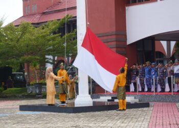 BINTAN - Mengenakan pakaian kebanggaan masyarakat Melayu (Kurung Melayu), Pemerintah Kabupaten Bintan melaksanakan Upacara Peringatan Hari Jadi Provinsi Kepulauan Riau ...