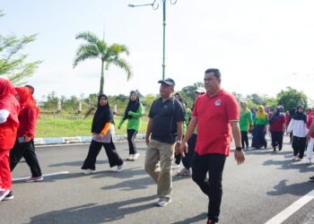 BINTAN - Semarakkan HUT Kemerdekaan, Sekda Bintan, Ronny Kartika bersama para pegawai melaksanakan jalan santai di lingkungan Sekretariat Daerah Kabupaten ...