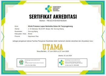 BINTAN - Klinik Pratama Lembaga Pemasyarakatan (Lapas) Narkotika Kelas IIA Tanjungpinang meraih akreditasi utama dari Kementerian Kesehatan RI. Kalapas Narkotika ...