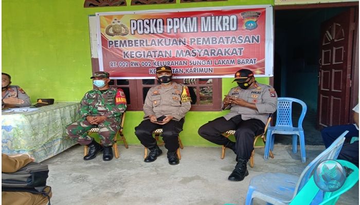 KEPRIONLINE.CO.ID,KARIMUN – Babinsa Sungai Lakam Barat serda Sudiro bersama dengan Kasat Binmas Polres Karimun menghadiri peresmian Posko Pembatasan Kegiatan Masyarakat ( PPKM ) di Rt 002 Rw 002 kel.sungai lakam Barat, Kecamatan Karimun,Selasa ( 23/3/2021).