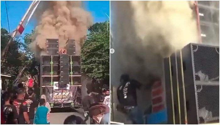 Keprionline.co.id, Nasional – Sebuah video yang memperlihatkan tumpukan sound system terbakar viral di media sosial. Dalam video yang diunggah di akun Instagram @memomedsos, Minggu (10/9/2023) lalu memperlihatkan tumpukan sound system yang diangkut menggunakan truk mengeluarkan asap tebal.