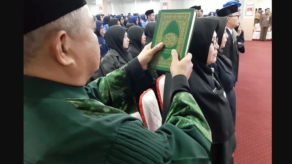 Pengambilan sumpah jabatan saat pelantikan ASN Pemkot Tanjungpinang, Kepulauan Riau. (Ogen)