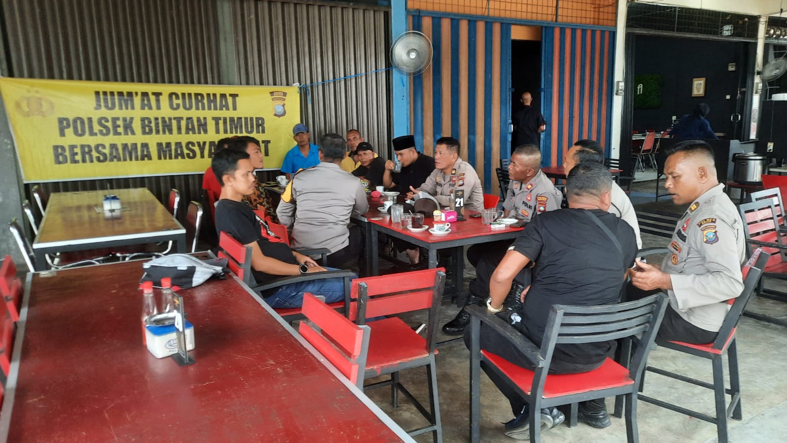 BINTAN – Kepolisian Sektor (Polsek) Bintan Timur kembali melakukan Jumat Curhat di kedai kopi Latansa, Jalan km 18, Kelurahan Gunung Lengkuas, Kabupaten Bintan. Jumat (22/09).