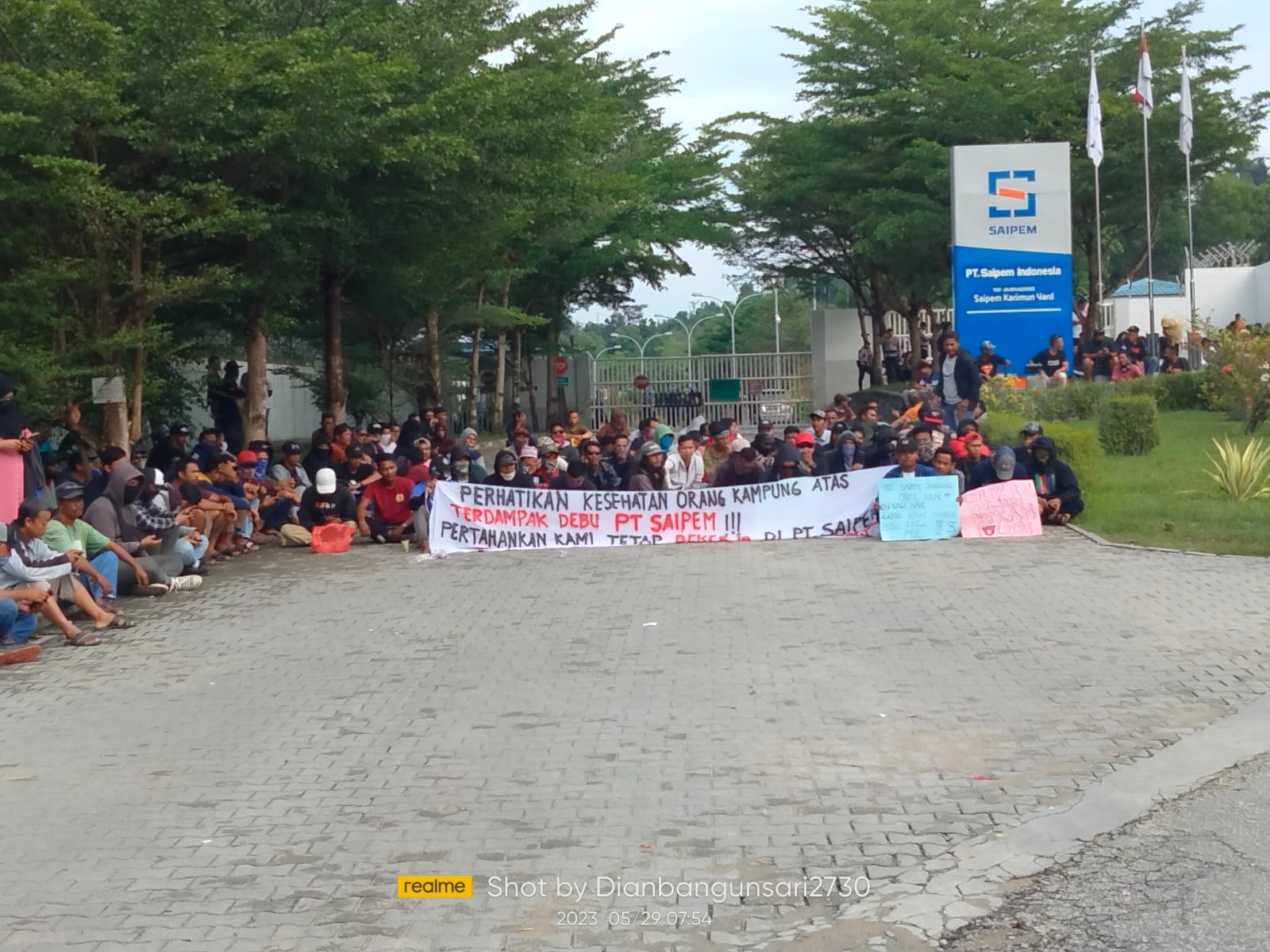 Keprionline.co.id, Karimun – Warga Desa Pangke melakukan aksi demo di pintu masuk PT.Saipem Karimun Yard (PT SKY), Terlihat warga Desa Pangke Barat menutup akses masuk karyawan dengan cara duduk sejak pukul 07.00 Wib sehingga karyawan perusahaan yang masuk pagi tertatan atau tidak bisa masuk bekerja, Senin ( 29/05/2023).