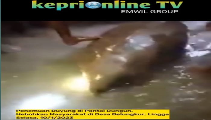 KEPERIONLINE.CO.ID, LINGGA – Video viral yang memperlihatkan penemuan hewan laut Dugong (Duyung) yang terdampar dipantai Dungun Desa Belungkur, Kabupaten Lingga. Kejadian itu terjadi pada hari Selasa (10/1/2023).